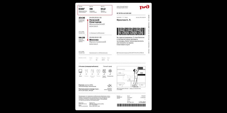 - Проверить данные в билете (ФИО, дата, номер поезда, места)