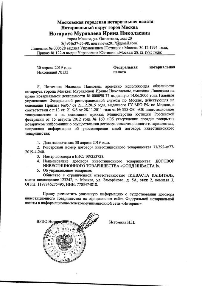 - Договор инвестиционного товарищества